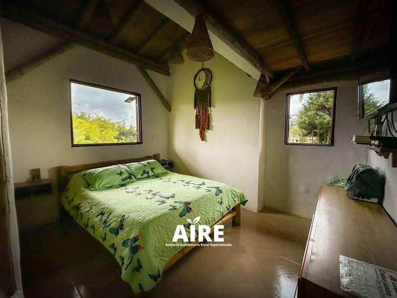 Ubicado en el sector La Cauchera. Predio de 704 m2 de topografía plana, situado a 1.620 ms.n.m. Dispone de una cabaña de dos niveles con capacidad para alojar a trece personas. Cinco habitaciones, cuatro baños, dos cocinas, sala-comedor, área social y parqueadero. Cuenta con Registro Nacional Hotelero.